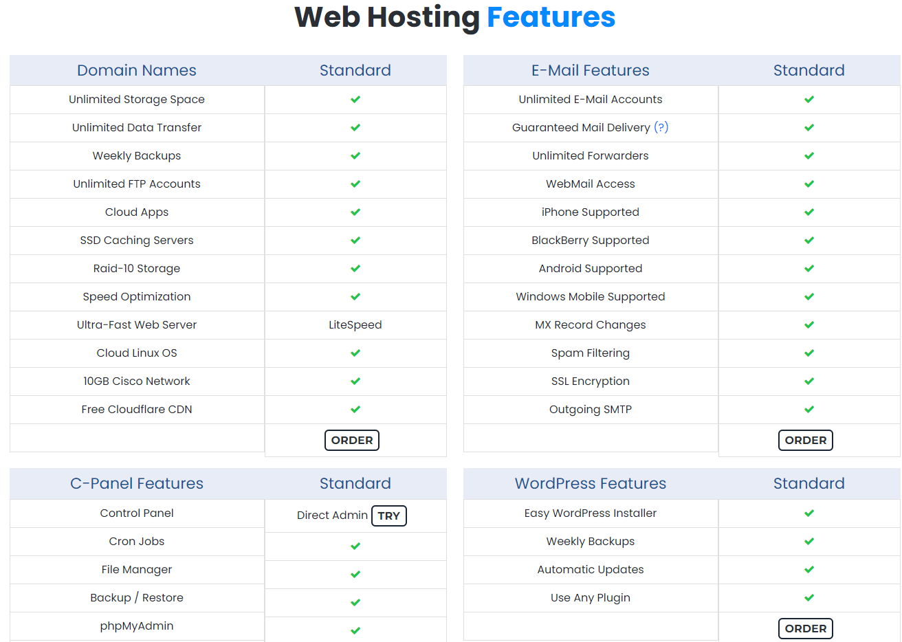 WordPress hosting has never been easier with our standard web hosting package. Click the links below for more information or go straight to the order form to start your hosting experience. We also offer virtual servers, dedicated servers and enterprise-level solutions that will fit every type of site and budget.